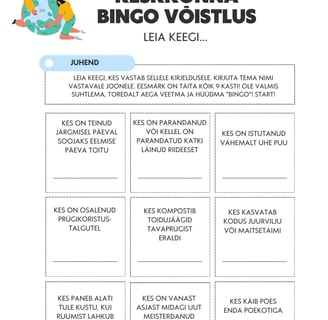Noored saavad bingo käigus jagada oma koduseid praktikaid teistega ning inspireerida teisi oma kogemusega. Töölehe võib allalaadida ja vabalt kasutada.